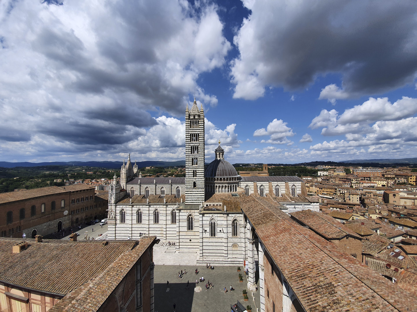 Een absolute ‘must see’ is de Dom van Siena. Deze Dom is aan de buitenkant volledig bekleed met zwart/wit gestreepte marmer, van Moorse afkomst. Adembenemend.